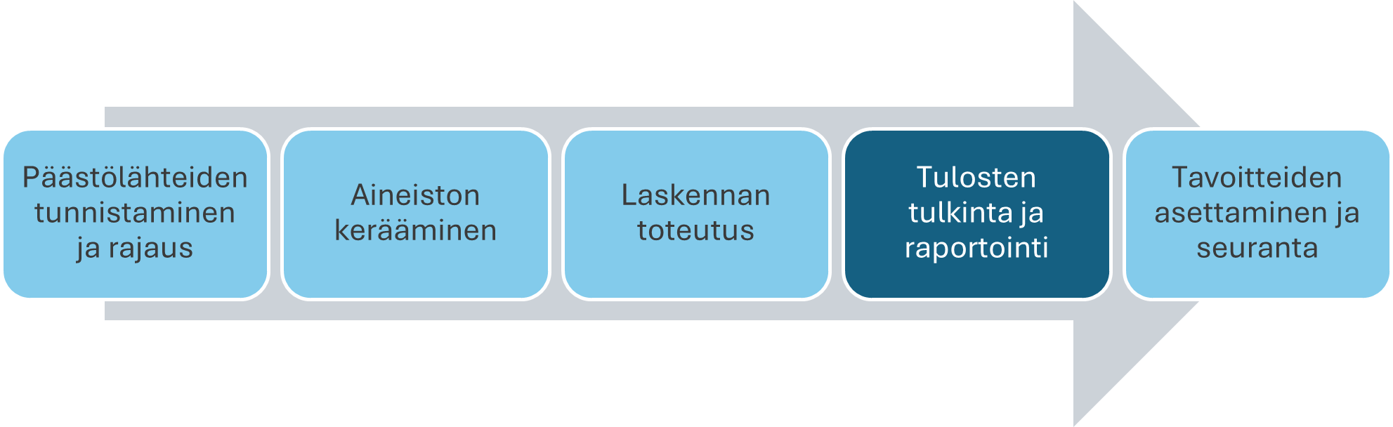 Tärkeä osa tulosten tulkintaa on myös tulosten luotettavuuden arviointi. Onko kaikki tarpeellinen varmasti mukana laskelmissa, onko laskelmat tarkistettu virheiden varalta ja onko epävarmuudet huomioitu ja kirjattu ylös? Jos tarkastelun yhteydessä havaitaan virheitä, voidaan joutua palaamaan laskentaprosessin aiempiin vaiheisiin niitä korjaamaan. Prosessi ei siis välttämättä etene lineaarisesti alusta loppuun, vaan välillä voi joutua hyppimään edestakaisin vaiheiden välillä, jotta lopputuloksena on kattava, luotettava ja organisaation hiilijalanjälkeä mahdollisimman todenmukaisesti kuvaava laskelma.