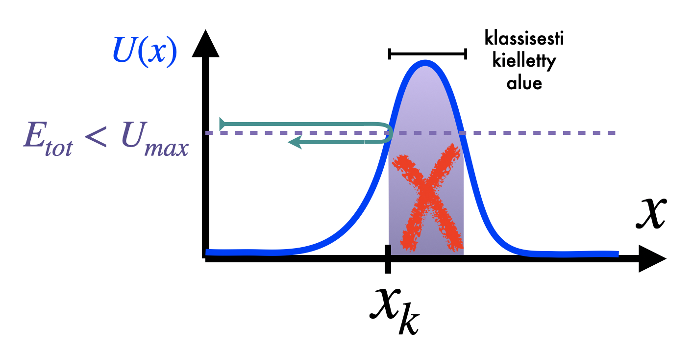 Kuva 4. Hiukkanen on klassisesti kielletyllä alueella vain osittain.